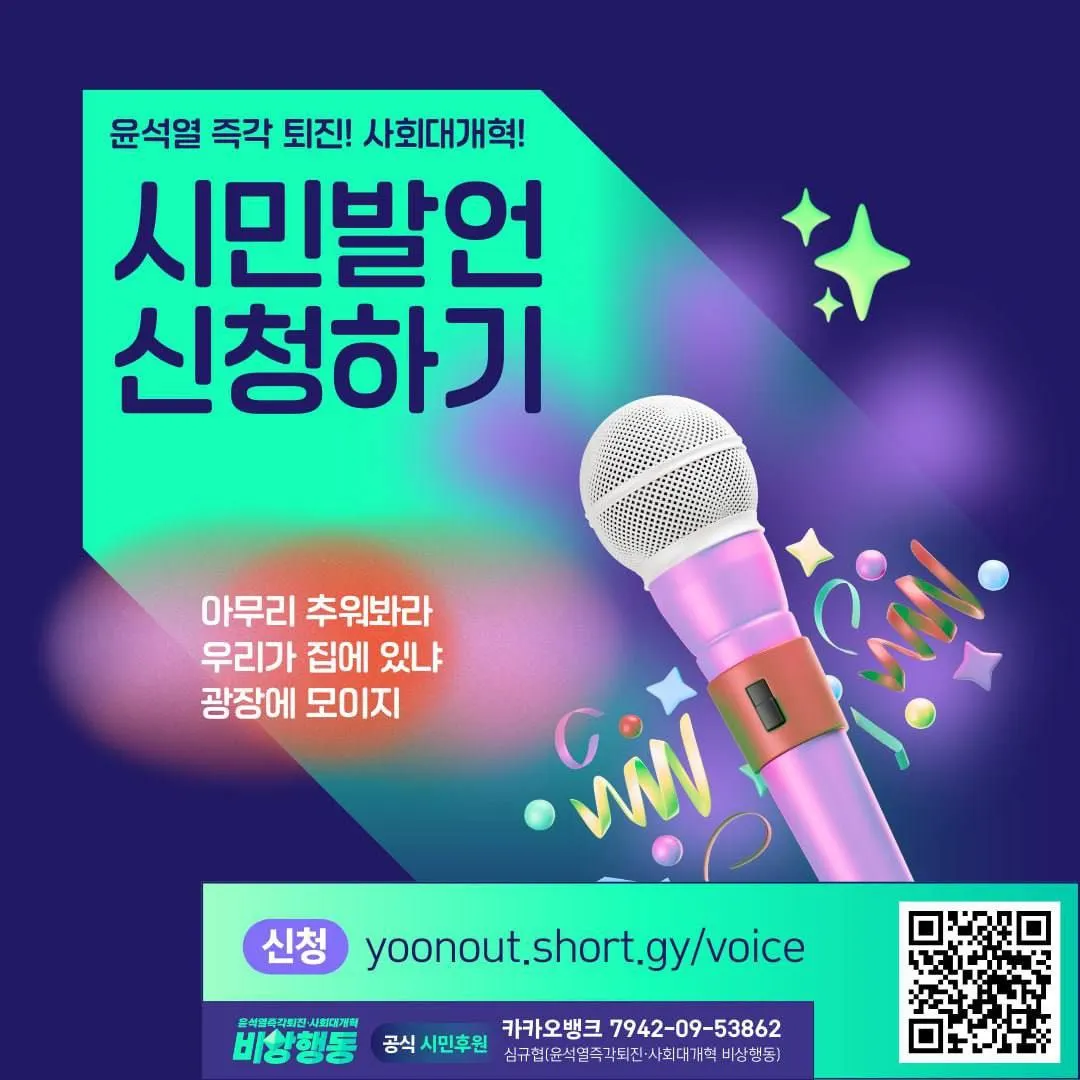 내란범 체포와 구속, 처벌을 요구하는 목소리도 좋고, 우리가 만들어 갈 사회에 대한 이야기도 좋아요. 함께 연대하며 각양각색의 이야기를 나눠주세요.
