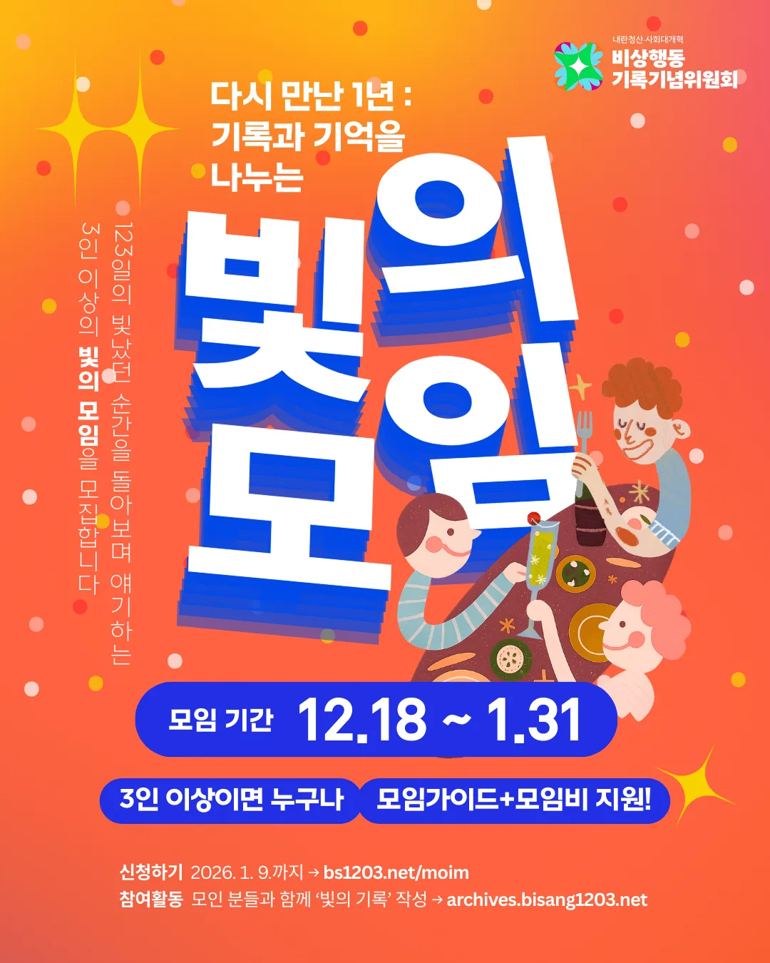 123일의 빛났던 순간을 돌아보며 얘기하는 3인 이상의 ‘빛의 모임’을 모집합니다.