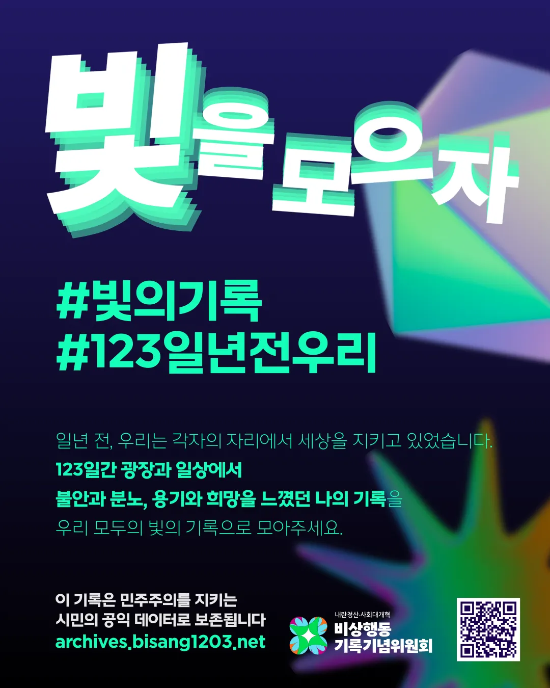 우리가 지켜낸 그 순간들을 잊지 않기 위해 시민의 ‘빛의 기록’을 지금 모으고 있습니다.